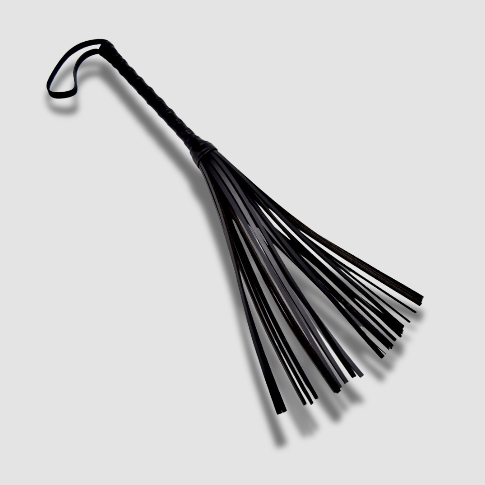 The flogger features a high-quality leather-wrapped handle, providing a luxurious feel and a firm grip. The craftsmanship ensures that the handle is not only aesthetically pleasing but also durable, standing up to intense play sessions.