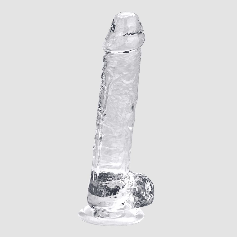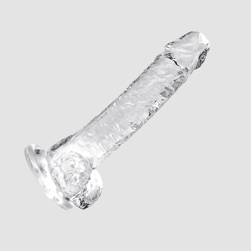 Enhance your pleasure with The Loving Joy 7 Inch Dildo with Balls Clear, available exclusively at Secret Sinners.