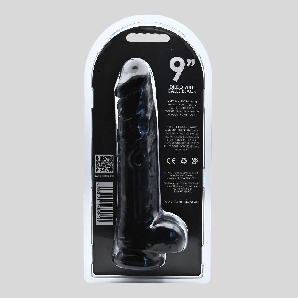 The Loving Joy 9 Inch Dildo with Balls offers a realistic experience with a veiny shaft, pronounced head, and textured balls. Made from body-safe TPE, it features a strong suction cup base for hands-free play. With a 9.5-inch length and 1.75-inch diameter, it delivers deep, satisfying pleasure.